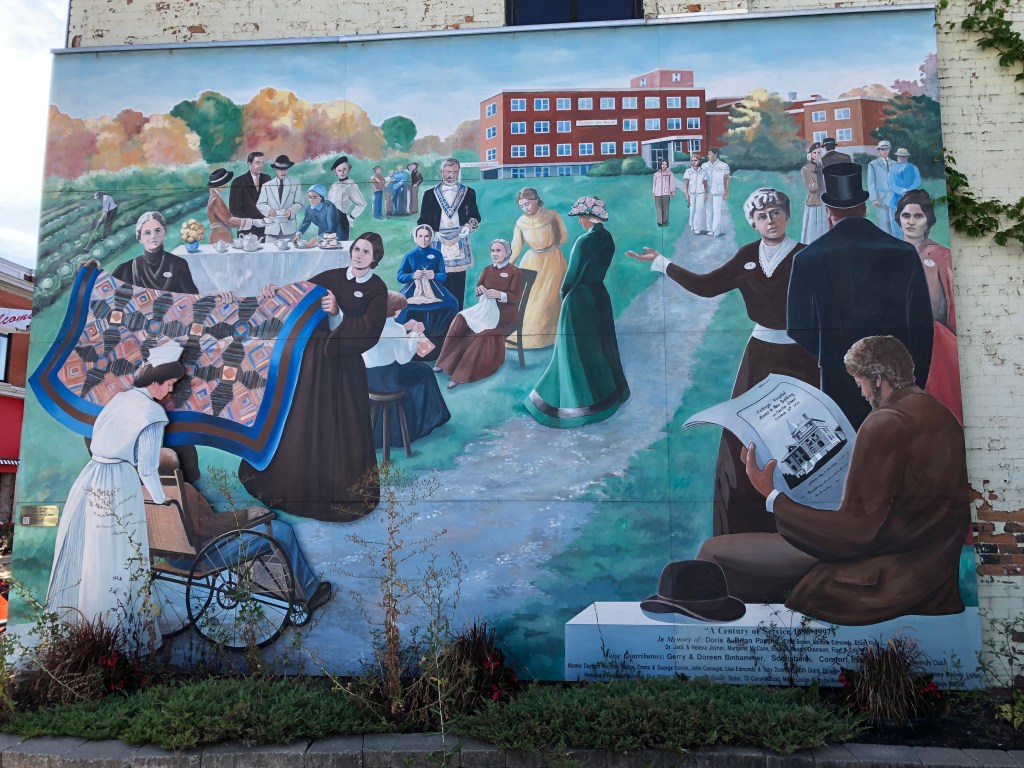 A pontoon ride on Shawano LakeSally and her Aunt Bev – cracking up over something!With my cousins in Green Bay Cody has been doing amazingly well – he is within days of turning 16!Pembroke, Ontario – A pretty town on the road toward Ottawa.Pembroke had some cool murals…